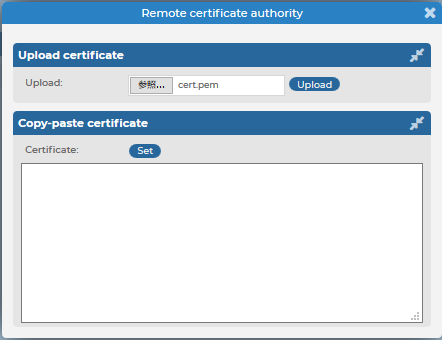 をクリックして、リモートアクセスするSSBのCA証明書をアップロードします。