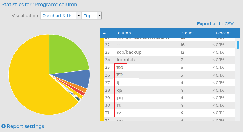 - [Statistics for “Program” column]画面にプログラム名に関する統計情報が表示されます。リストに不正なプログラム名がないかどうか確認します。