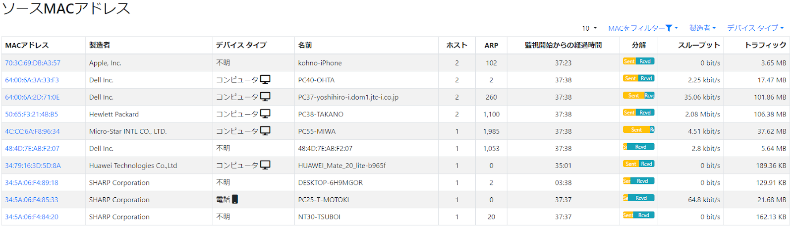 ntop社の製品は、xFlow受信及びSPAN/TAPによるトラフィック収集を行いますが、どちらの構成でもIPアドレスとMACアドレスを紐づけてくれます。