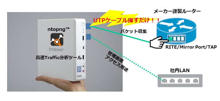 まさに、ケーブルをつなぐだけでトラフィック分析がすぐにはじまるのです。
