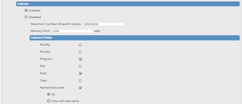 検索用のインデックスを指定するには、[Indexer]セクションで、”Enabled”を有効にします。