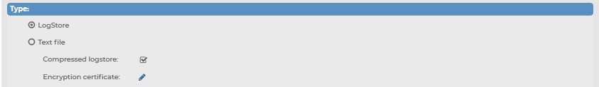 ログを保存する形式を指定するには、[Type]セクションで”LogStore”または”Text file”を選びます。”LogStore”はバイナリ形式で保存され、”Text file”はテキスト形式で保存されます。