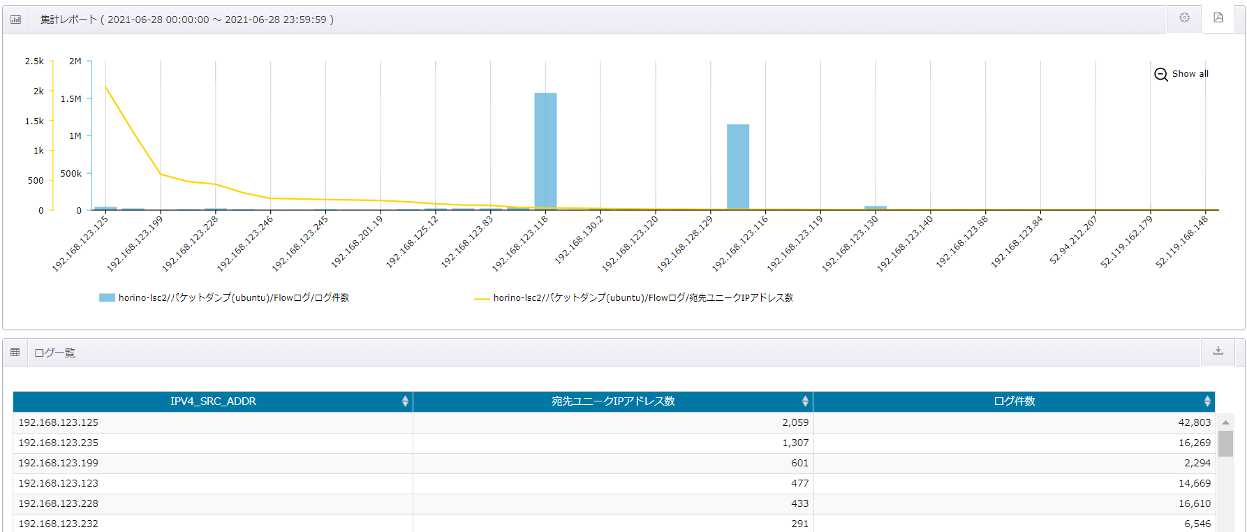 想定外の端末が多数のホストと通信していないか確認することができます。