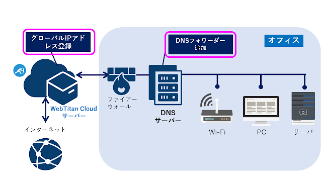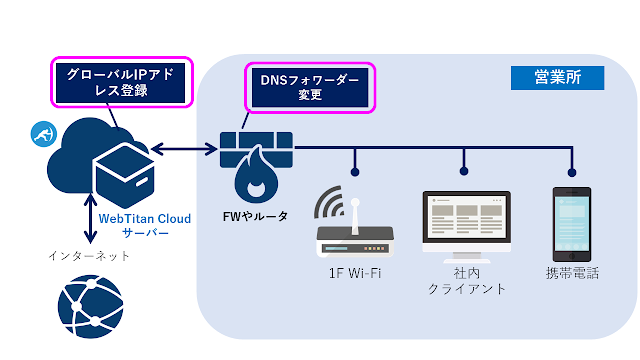 このように、ユーザーの端末がWebTitan Cloudサーバーへ繋がるように道筋をつけさえすれば、WebTitan Cloudの主な設定は完了します。そのため、環境が異なる複数拠点を持つお客様にとって、WebTitan Cloudは提案しやすく、手離れが良いと言えます。